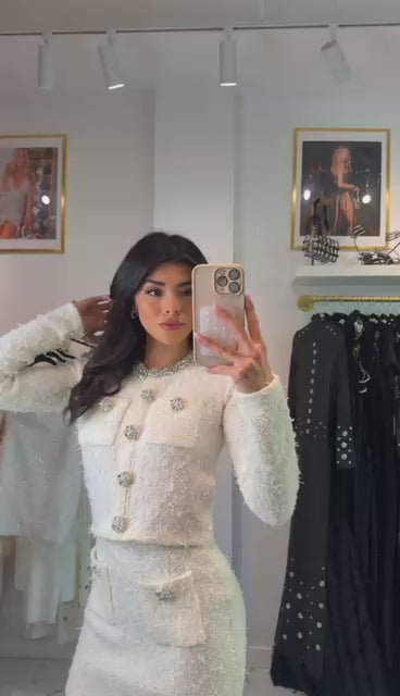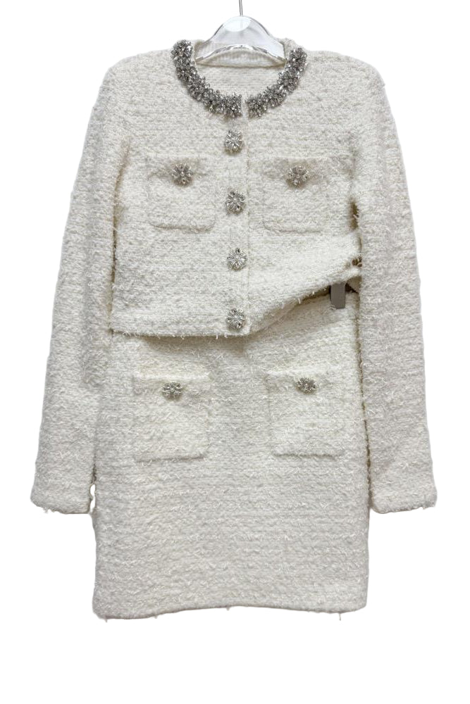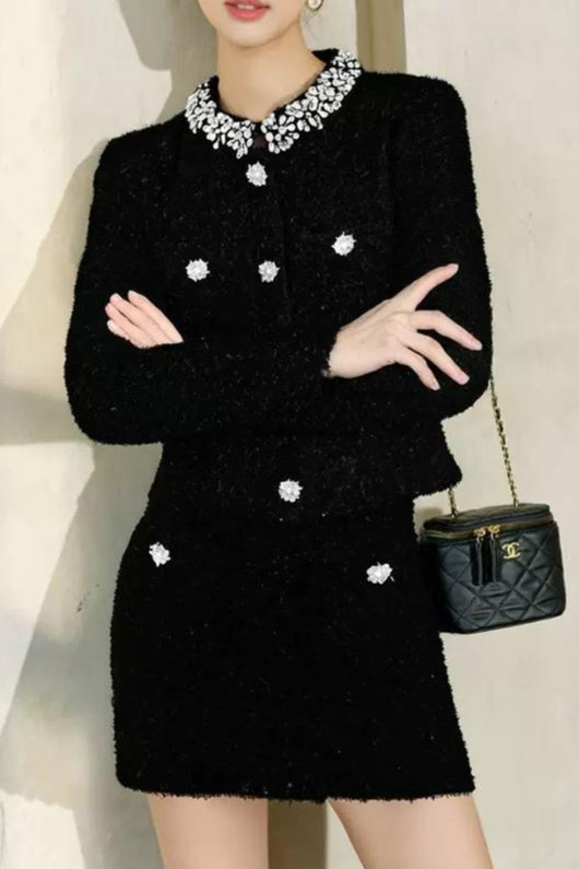 Jessica Bara Torrie Tweed Long Sleeve Top and Mini Skirt Two Piece Set