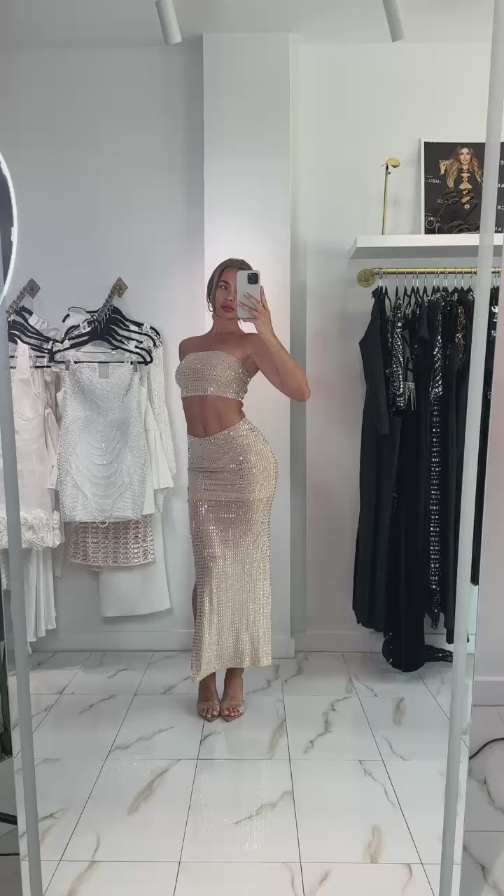 Jessica Bara Yasyl Strapless Tube Crystal Top and Maxi Skirt Two Piece Set
