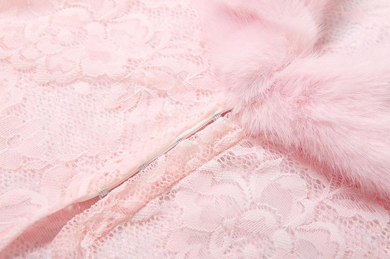 Jessica Bara Zashi Lace Fur Long Sleeve Top and Mini Skirt Two Piece Set