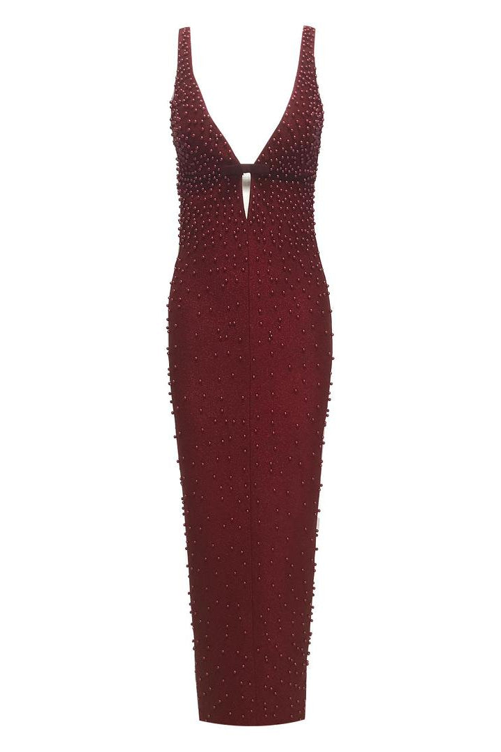 Jessica Bara Alirosa Beaded Deep V-Neck Maxi Dress