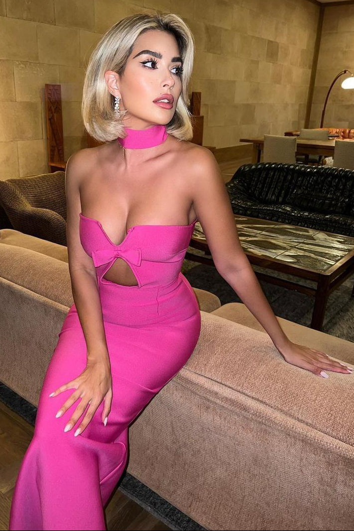 Elevate your evening look with the Jessica Bara Asner Choker Ribbon Cut Out Maxi Dress—a show-stopping piece that blends sophistication with bold style. This stunning maxi features a chic choker neckline and strategically placed cut-outs that add an edgy, modern twist. The flowing silhouette skims your curves beautifully while the ribbon detailing brings an unexpected touch of elegance. Perfect for making a memorable entrance at any special occasion, this dress proves that sometimes the best fashion moments come from a little daring design.