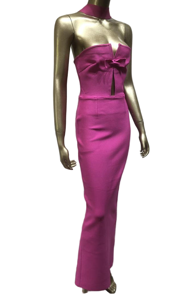 Jessica Bara Asner Choker Ribbon Cut Out Maxi Dress