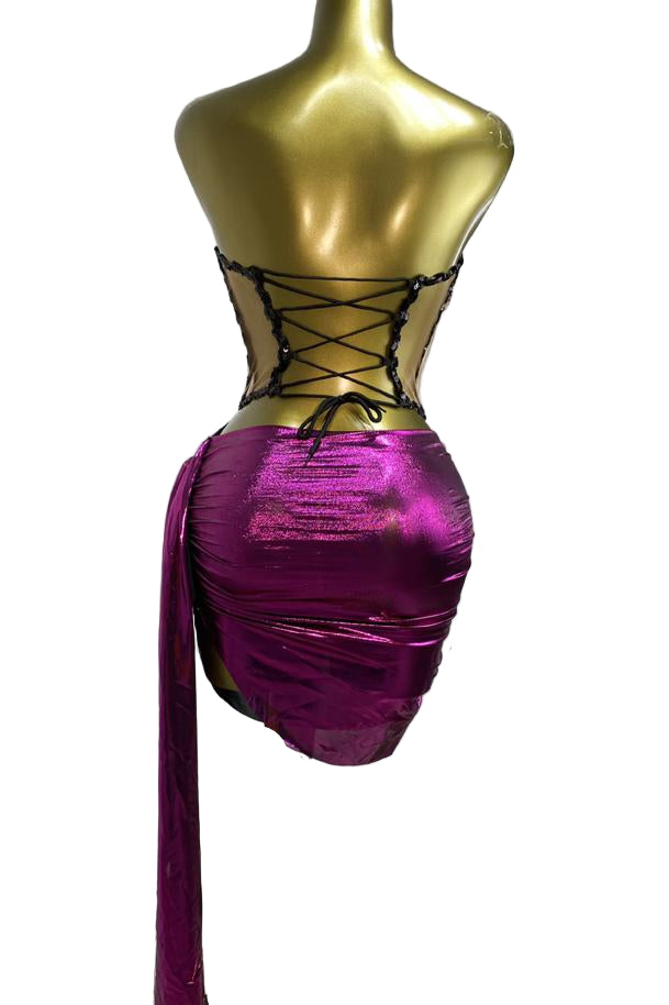 Jessica Bara Emari Crystal Strapless Tube Top and Mini Skirt Two Piece Set