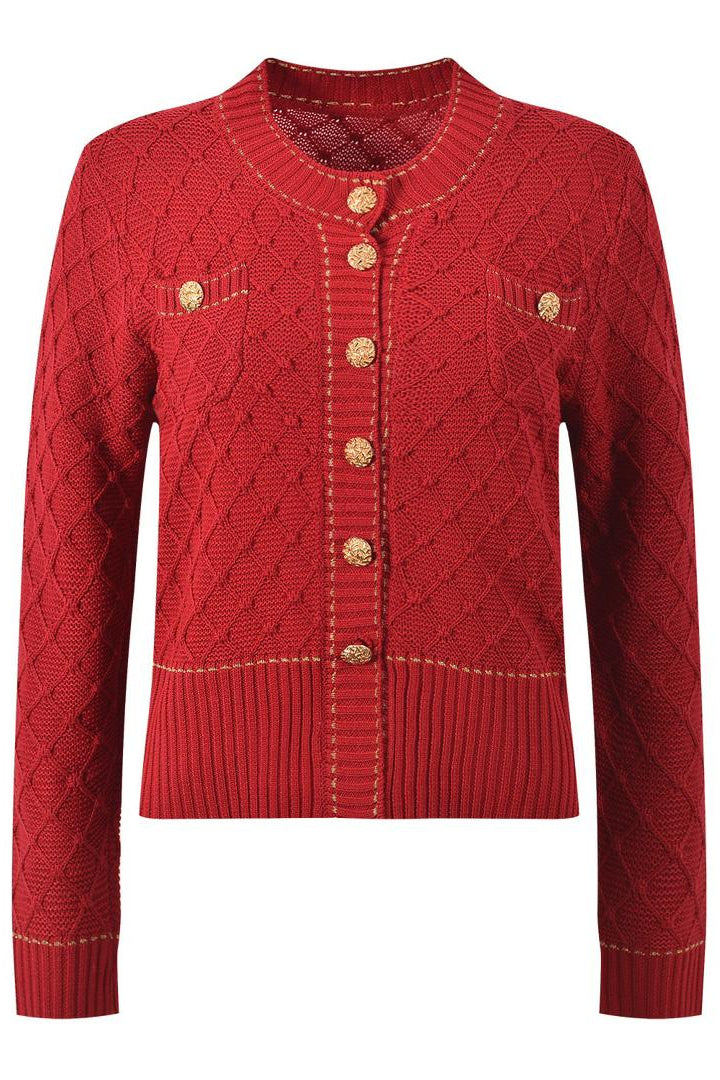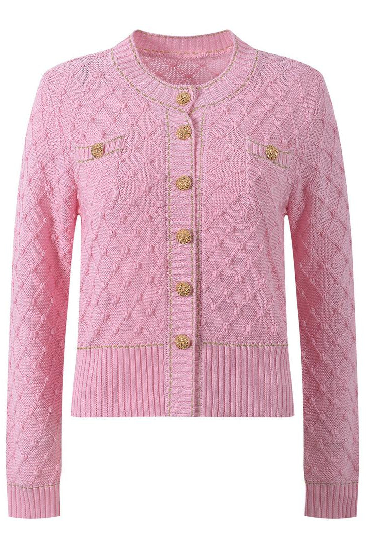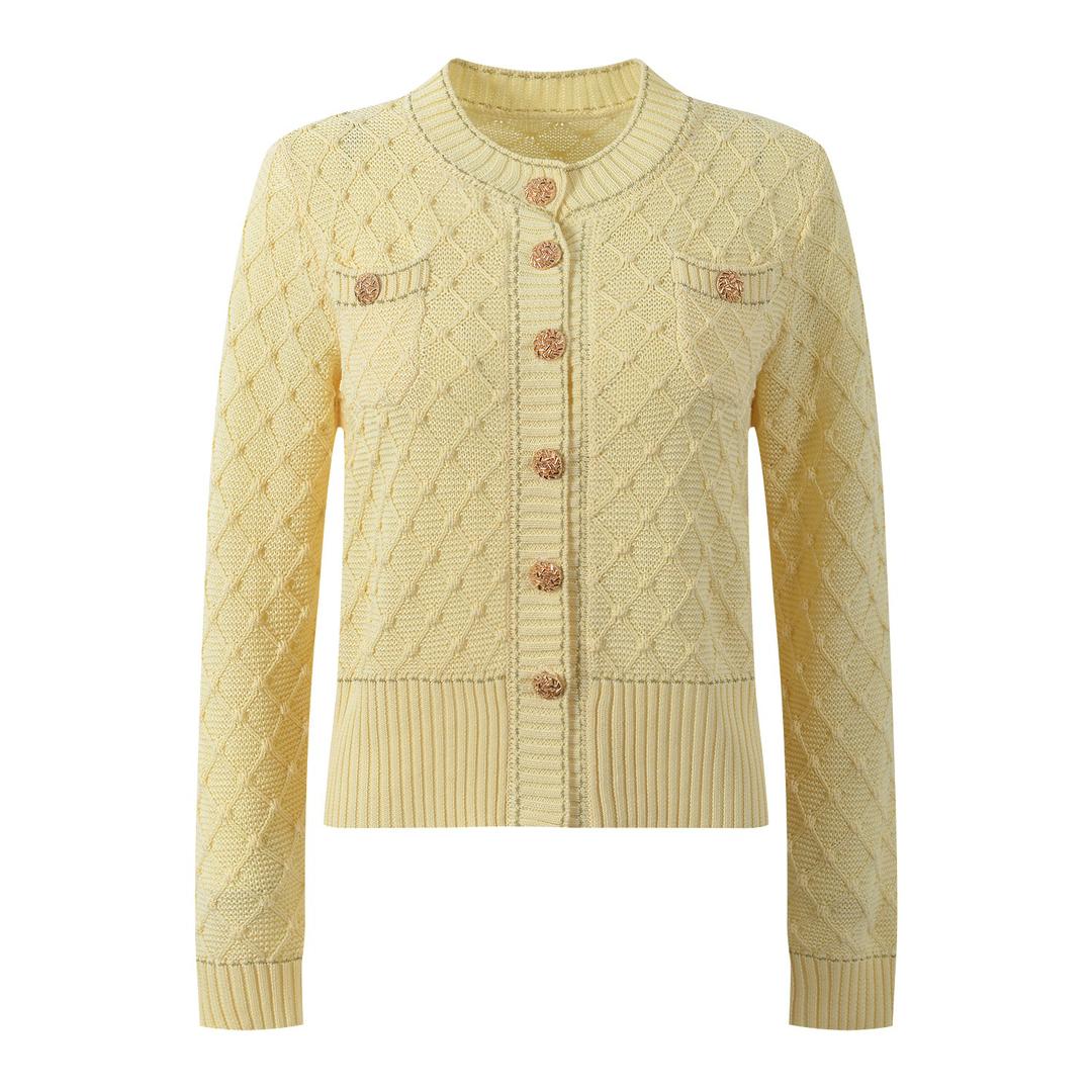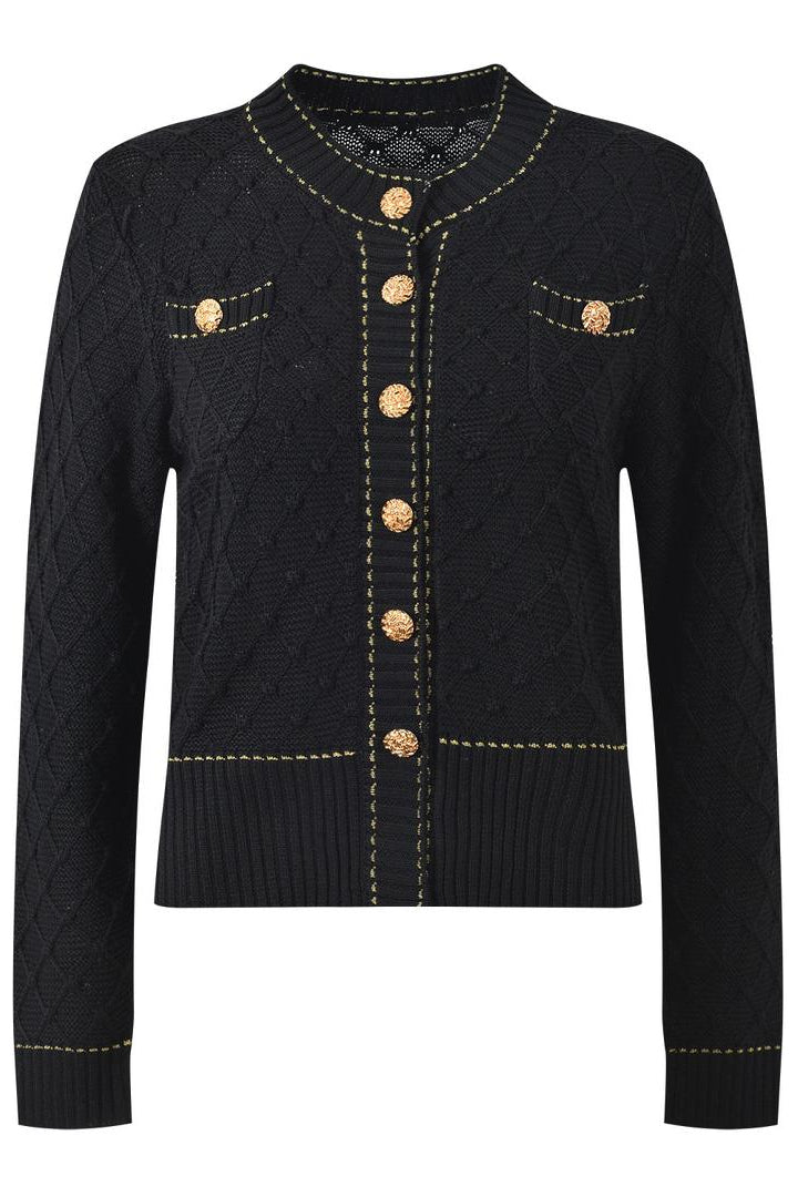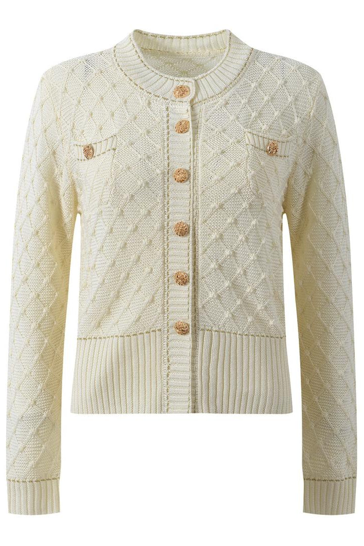 Jessica Bara Kaser Gold Button Knit Cardigan