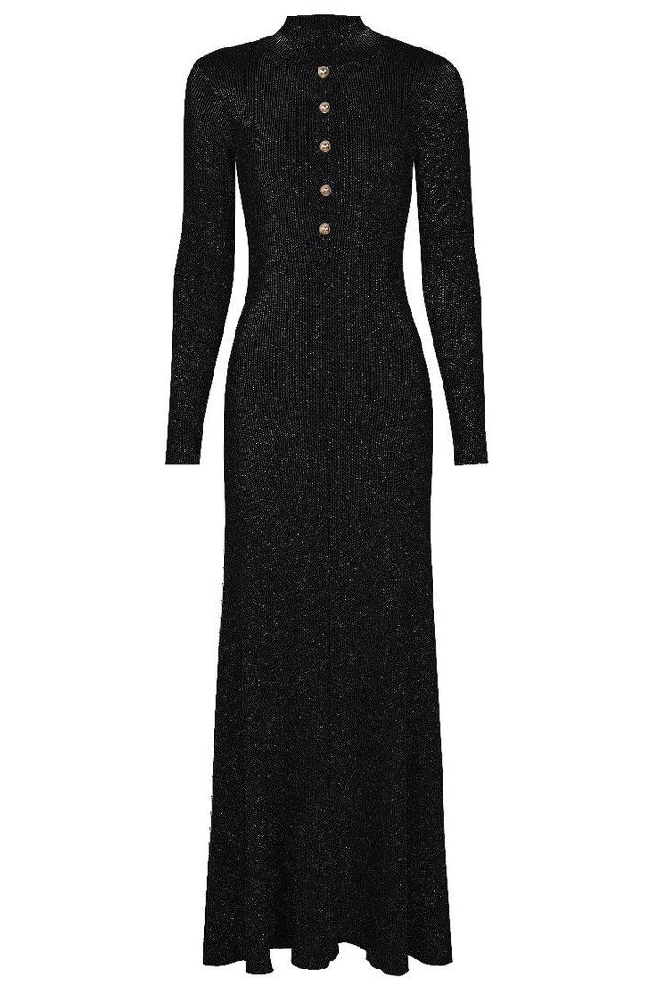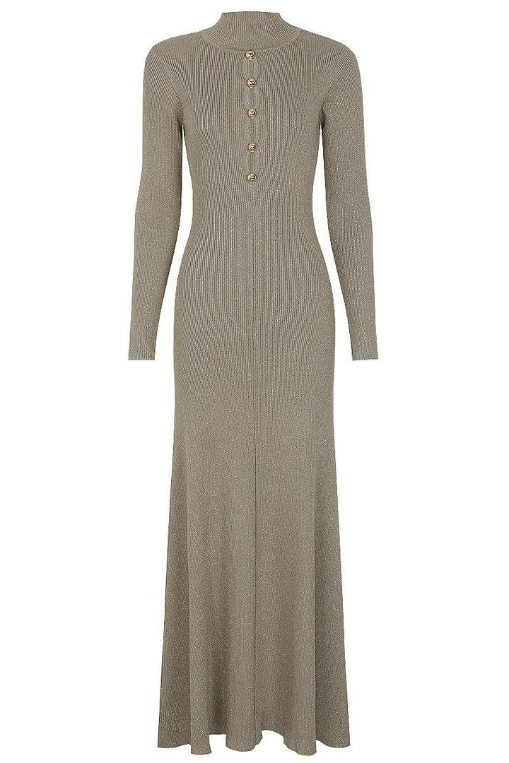 Jessica Bara Razlie Gold Button Long Sleeve Maxi Dress