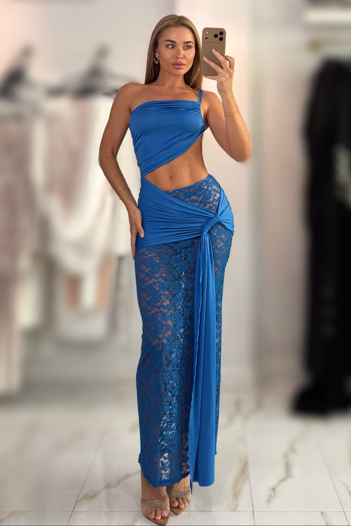 Jessica Bara Seka Draped Cut Out Mini Dress With Lace Skirt