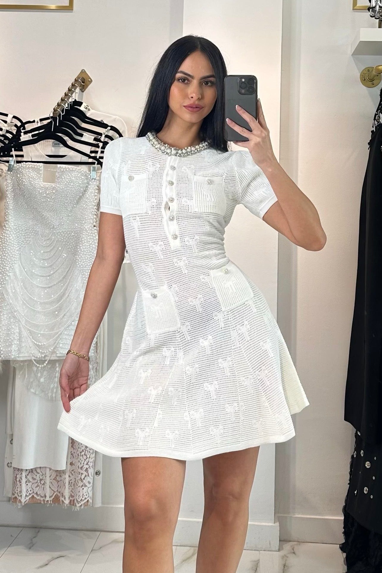 Jessica Bara Seshara Knit Bow Crystal Mini Dress