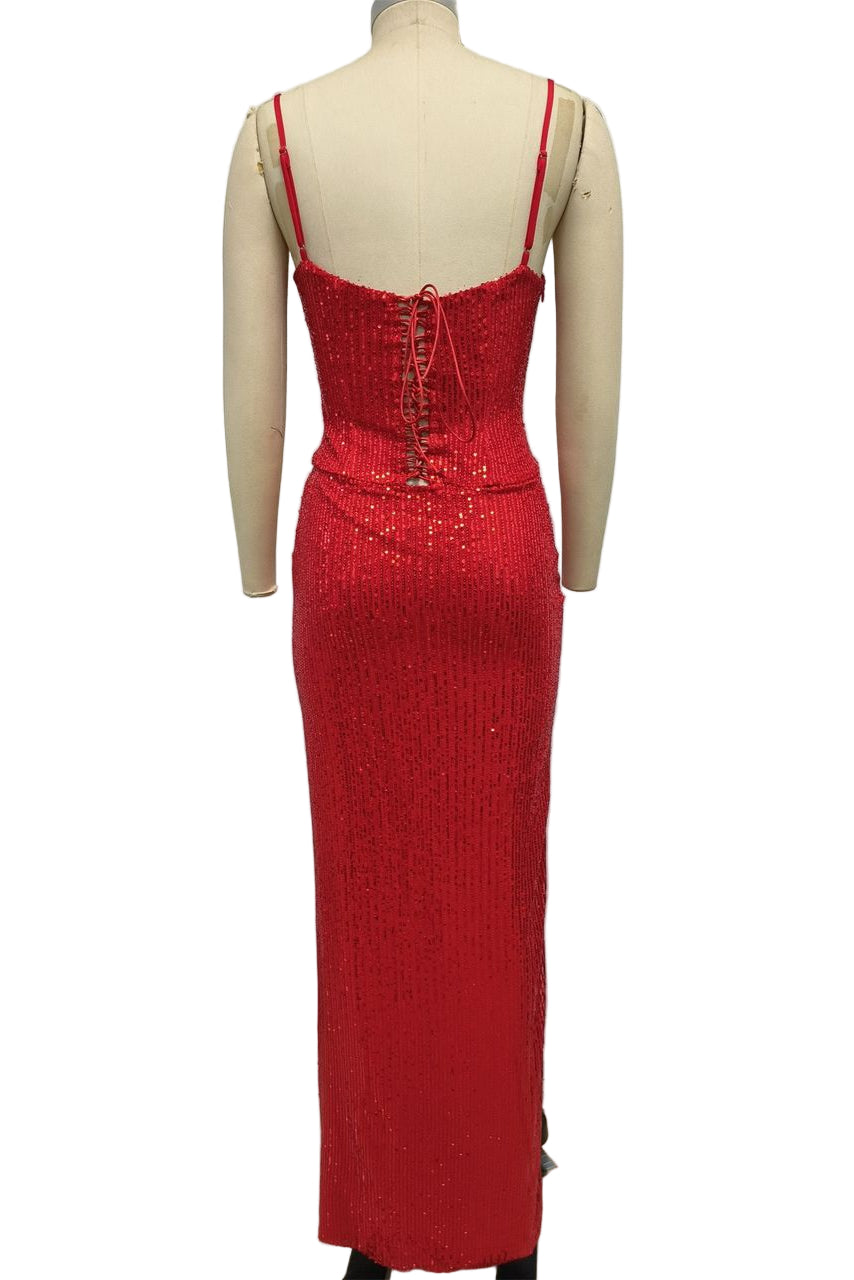 Jessica Bara Teya Sequin Corset Slit Maxi Dress