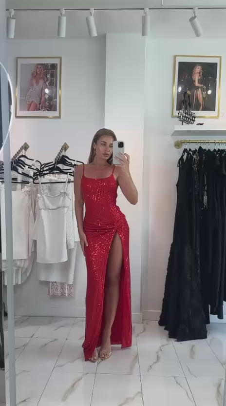 Turn heads with the Jessica Bara Teya Sequin Corset Slit Maxi Dress. This dazzling dress features shimmering sequins and a flattering corset silhouette that hugs your curves in all the right places. The daring slit adds a flirty touch, perfect for dancing the night away or making a grand entrance. Shine bright and feel confident wherever you go in this playful, show-stopping maxi dress.