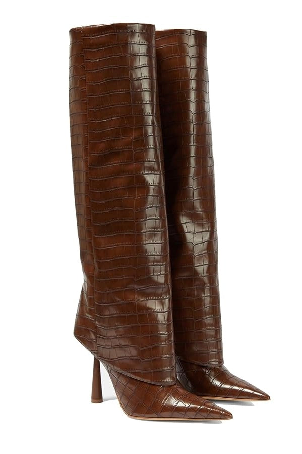 Step out with a dash of sass in the Jessica Bara Alvera Cuffed Knee High Boots. These chic boots combine a sleek knee-high silhouette with a playful cuff detail that adds flair to any outfit. Perfect for those who love to turn heads while staying comfy, they’re your new go-to for effortless style all season long.