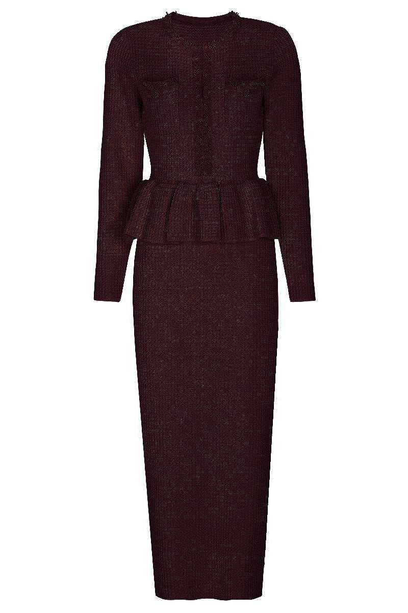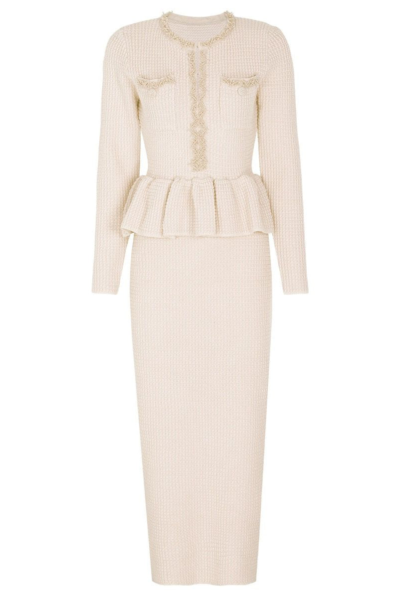 Jessica Bara Tesma Peplum Long Sleeve Knit Midi Dress
