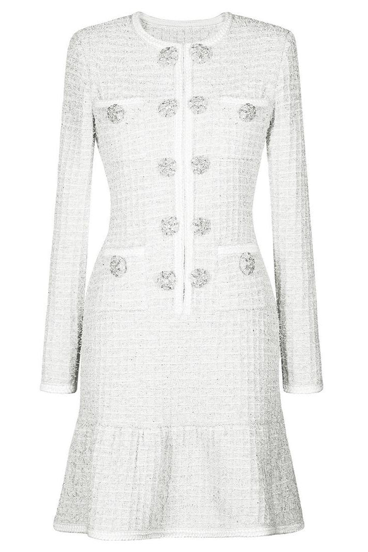 Jessica Bara Aprise Tweed Long Sleeve Mini Dress