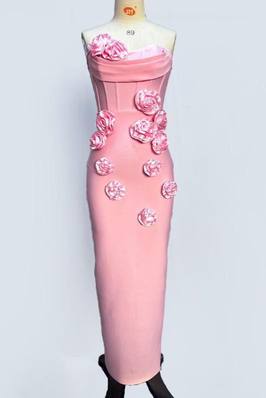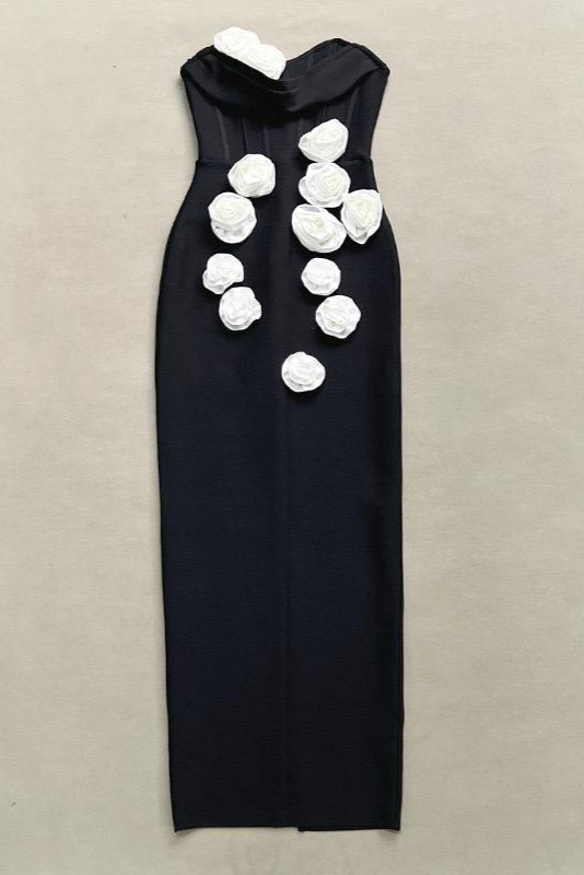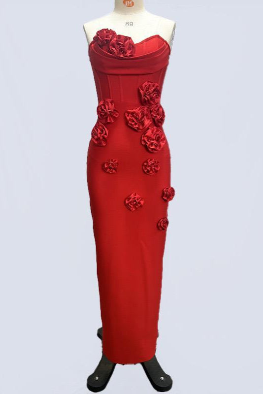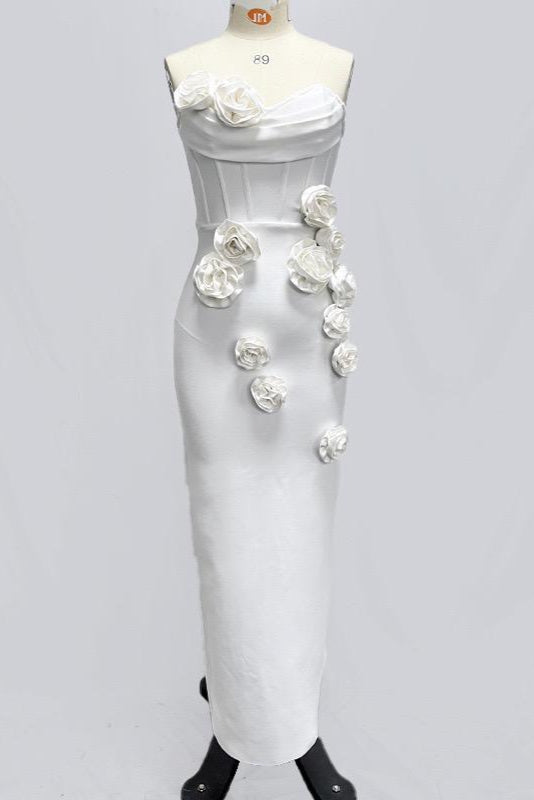 Jessica Bara Aren Strapless Tube Flower Bodycon Maxi Dress