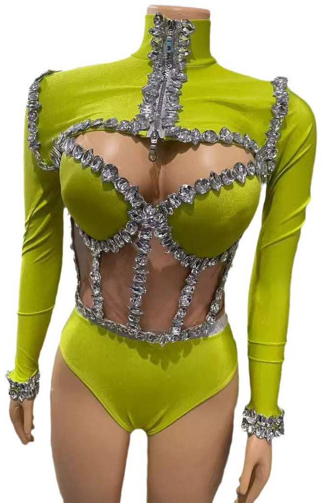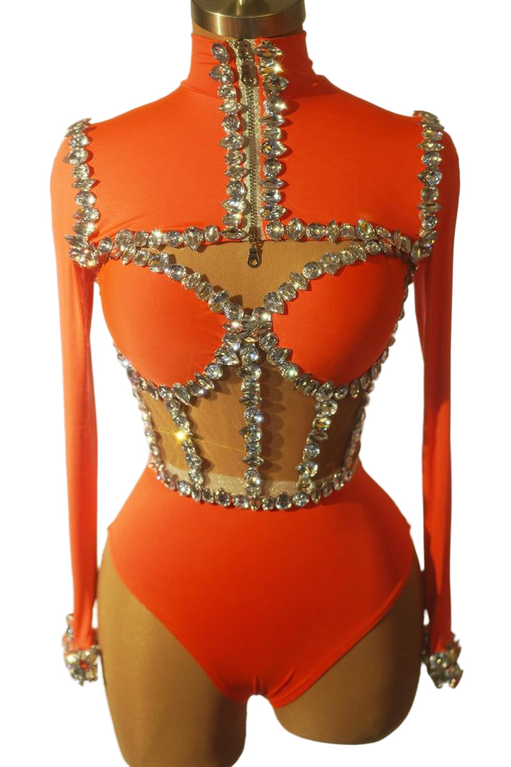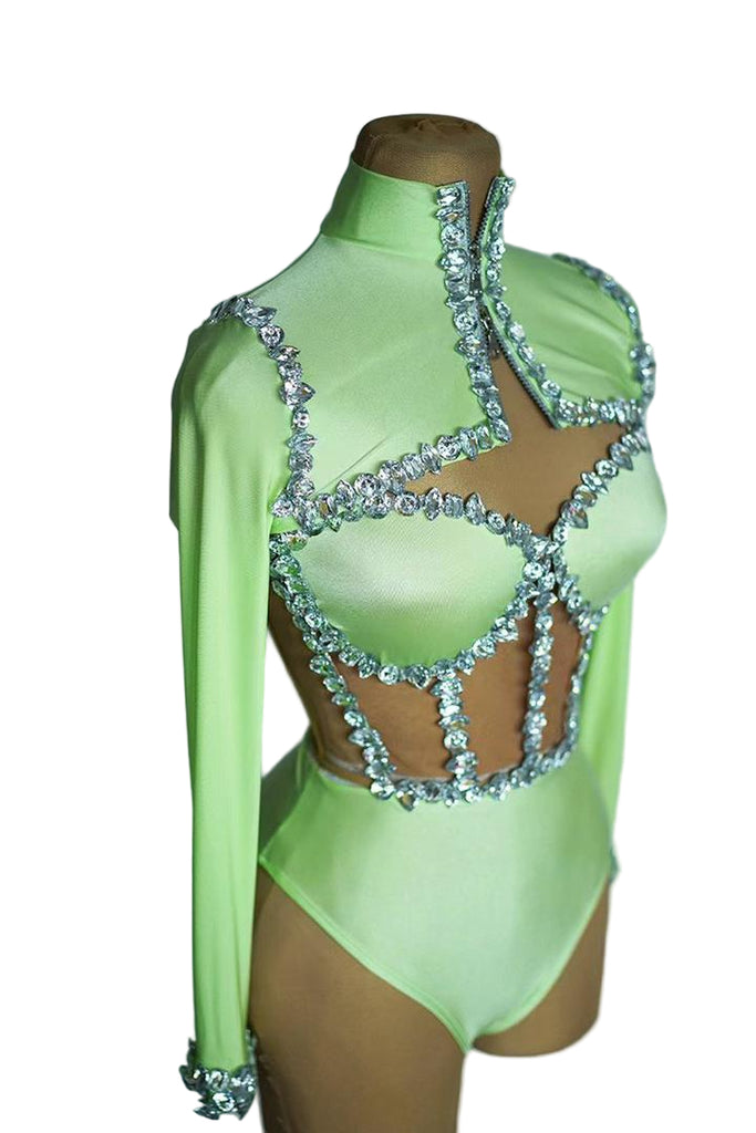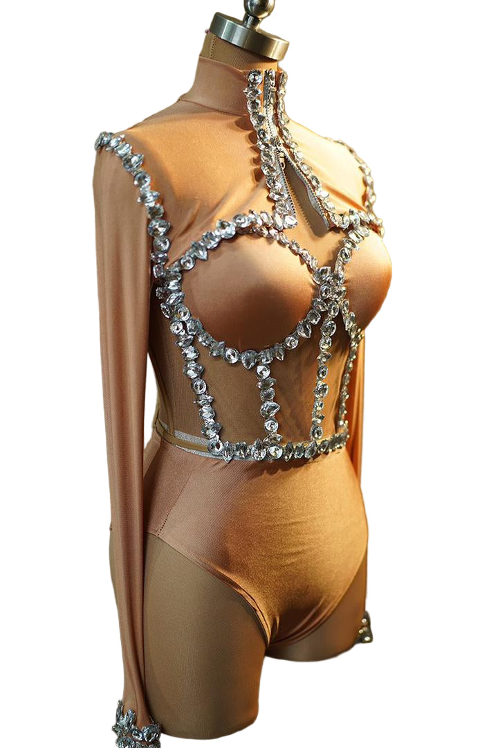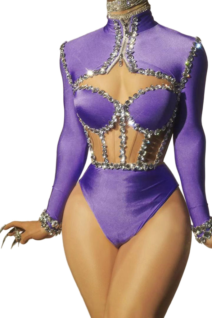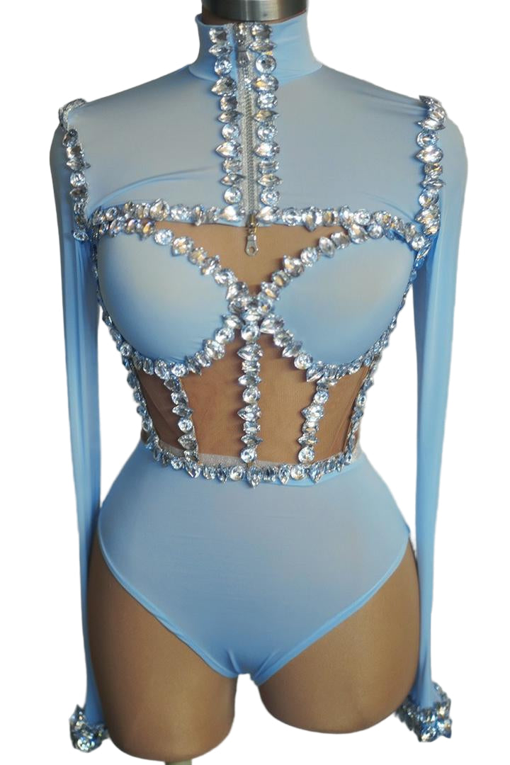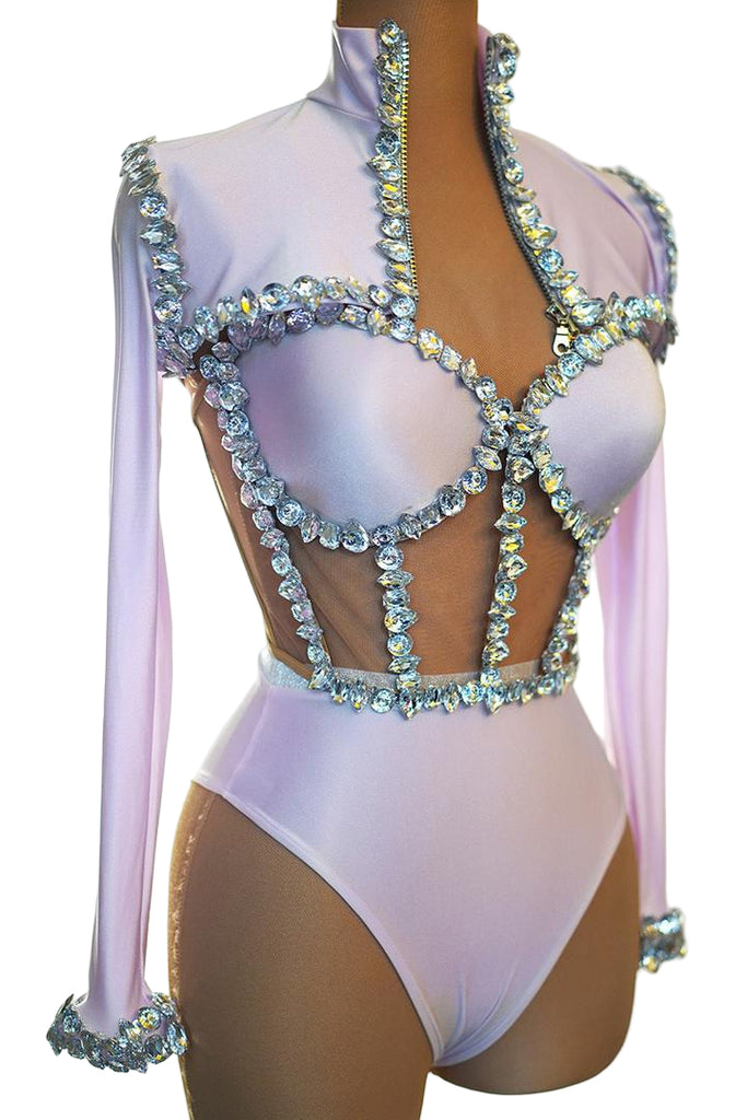 Jessica Bara Aseda Crystal High Neck Long Sleeve Bodysuit