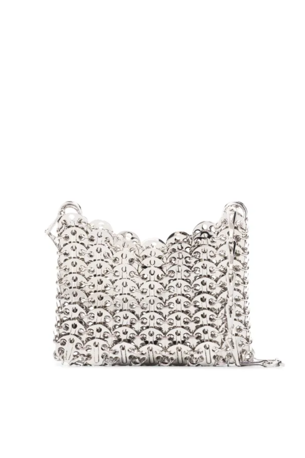 Add a touch of sparkle to your outfit with the Jessica Bara Bella Metal Chain Handbag. Its sleek design and shiny metal chain strap make it the perfect playful accessory for day or night. Compact yet roomy enough for your essentials, this handbag effortlessly combines style and fun wherever you go.