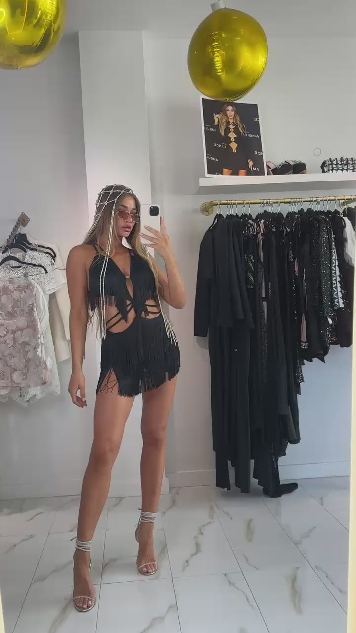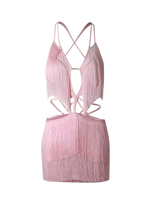 Get ready to turn heads in the Jessica Bara Caliser Fringe Cut Out Mini Dress! With its unique cutouts and playful fringe detailing, this dress is perfect for adding some fun to your wardrobe. Available in multiple sizes, it's versatile and comfortable for any occasion. (Get it before it's gone!)