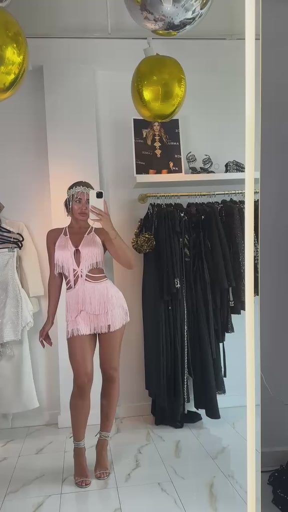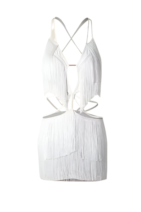 Jessica Bara Caliser Fringe Cut Out Mini Dress