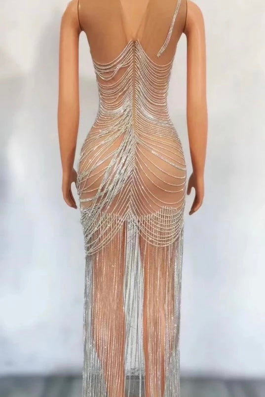 Jessica Bara Charisma Mesh Lining Fringe Dress