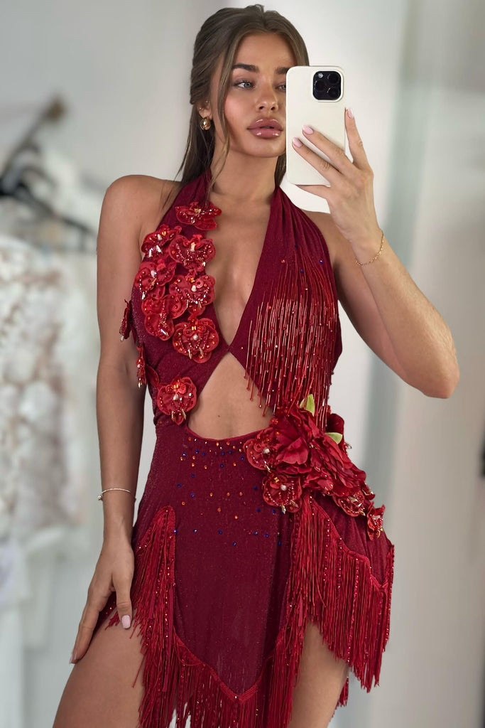 Jessica Bara Chiara Halter Neck Cut Out Flower Mini Dress