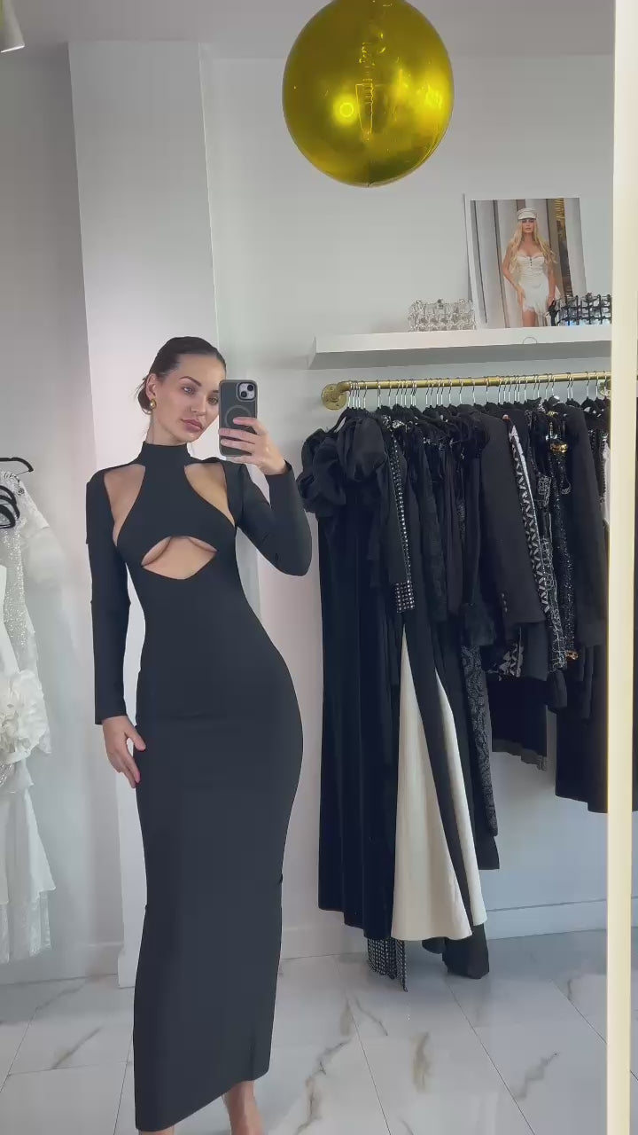 Jessica Bara Jarva High Neck Halter Cut Out Maxi Dress
