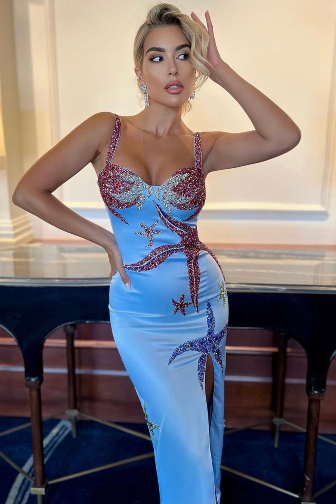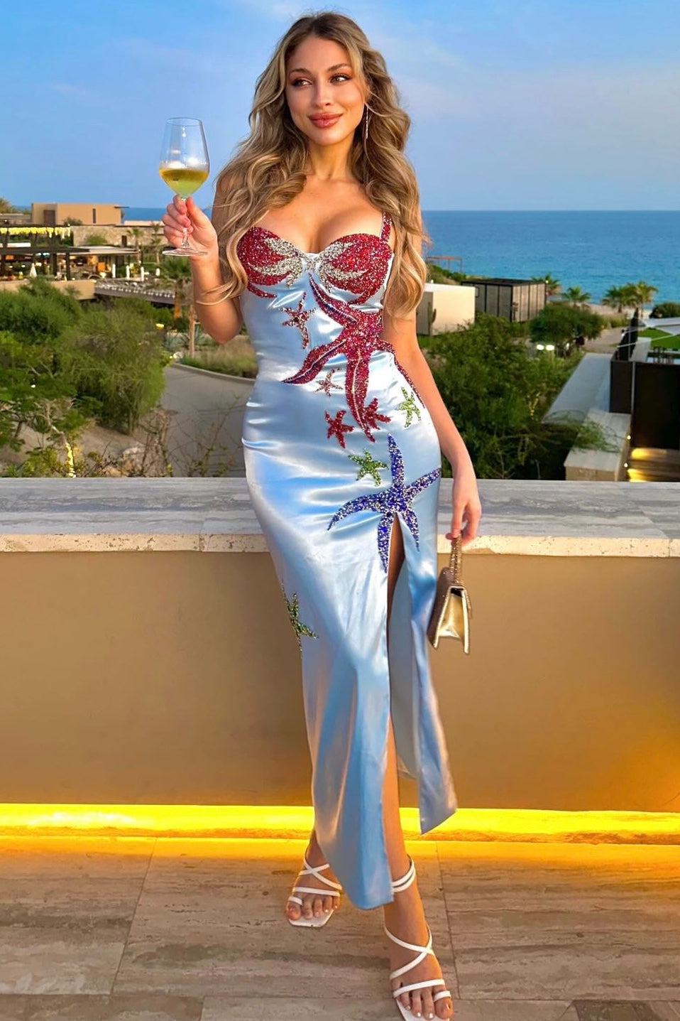 Jessica Bara Lindsi Satin Rhinestone Starfish Maxi Dress