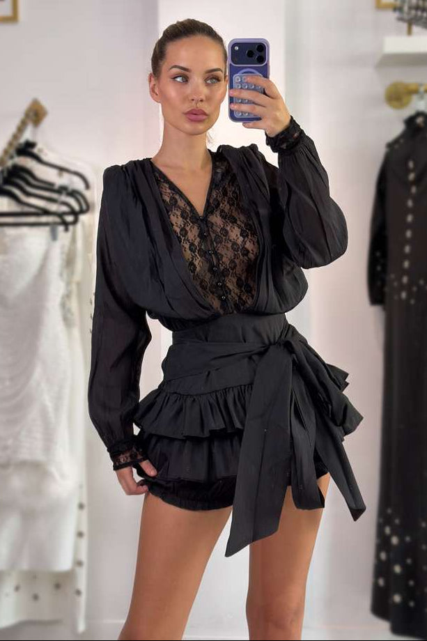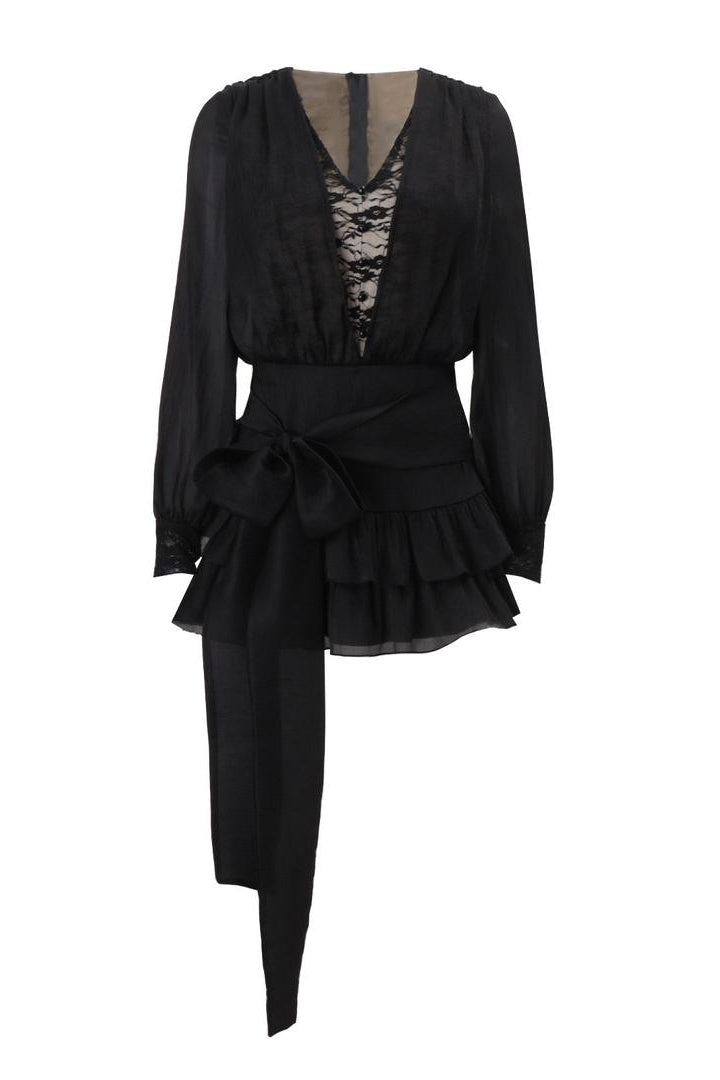 Jessica Bara Orisha Lace Long Sleeve Ruffle Mini Dress