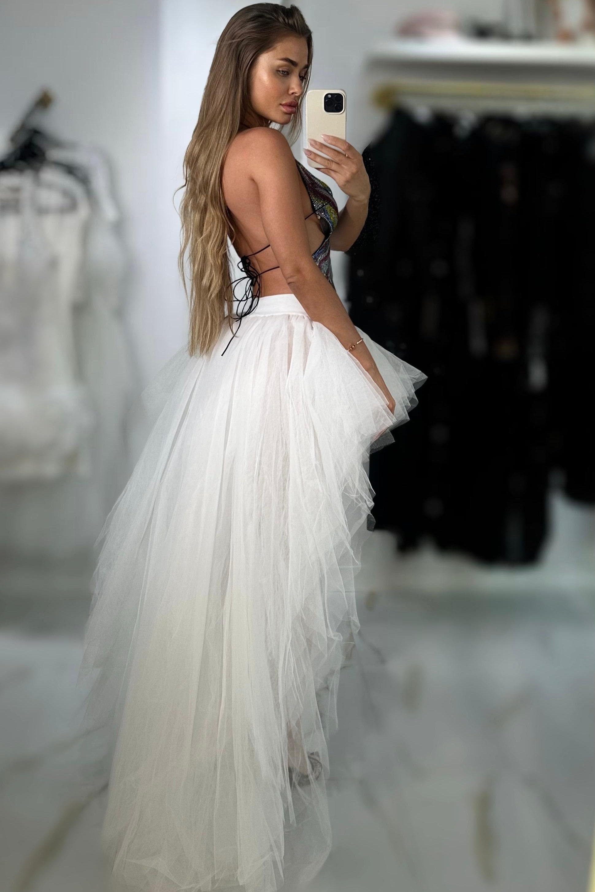 The Jessica Bara Resan skirt will take your wardrobe to new heights with its playful ruffle high low design! Add a touch of whimsy to any outfit and turn heads with this unique and stylish piece. Perfect for those who love to have a little fun with their fashion!