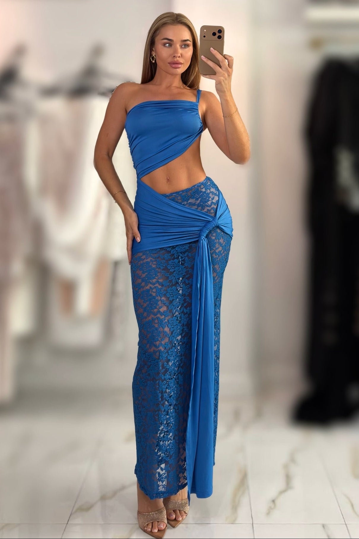 Jessica Bara Seka Draped Cut Out Mini Dress With Lace Skirt
