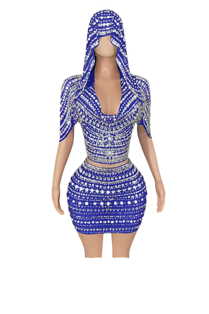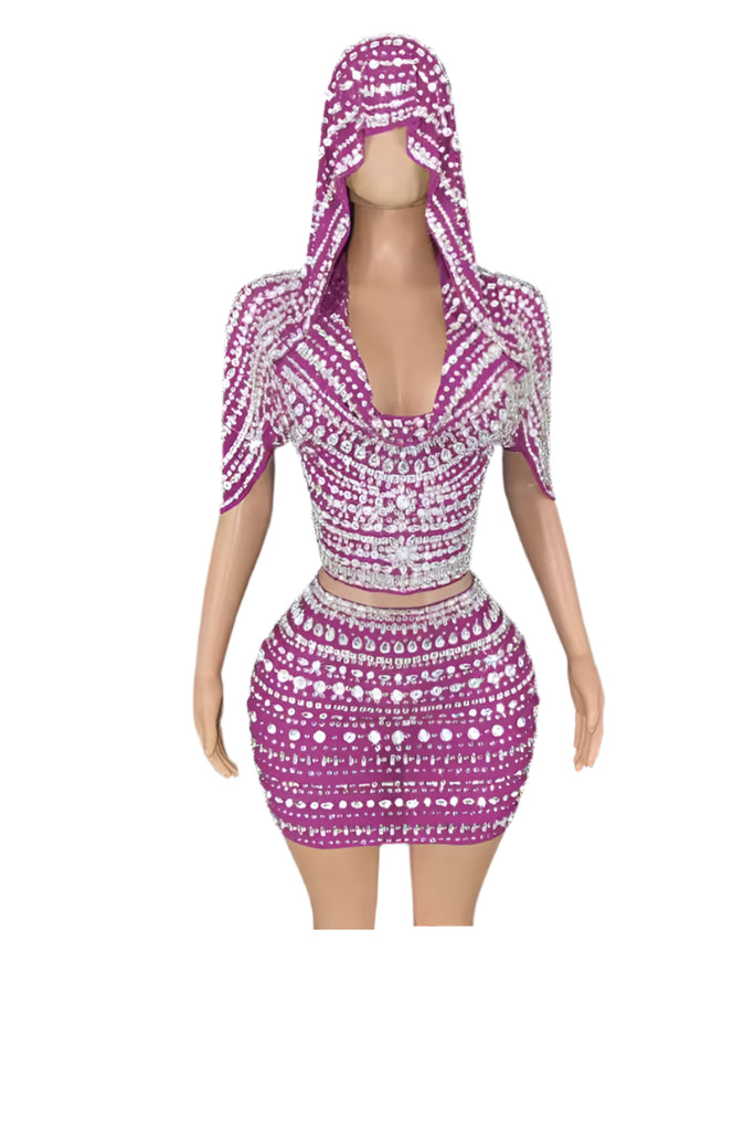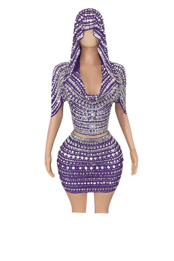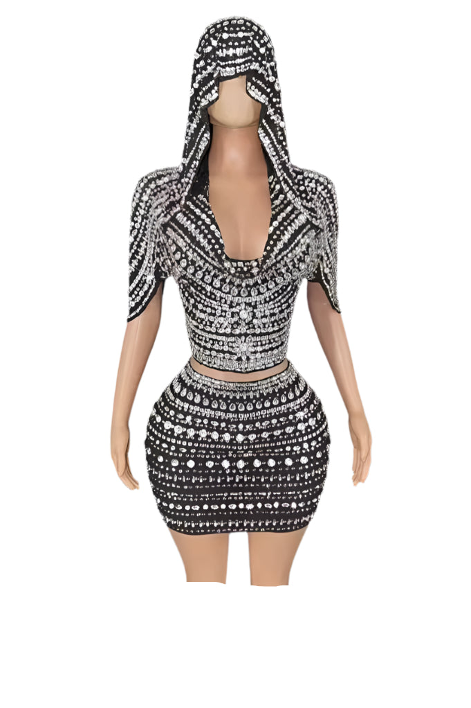Elevate your glam game with the Serafina Crystal Hooded Top and Mini Skirt Two Piece Set. This show-stopping duo features shimmering crystal embellishments that catch the light from every angle, paired with a cozy hooded top for that perfect blend of sass and comfort. The matching mini skirt completes the look with coordinated sparkle and attitude. Whether you're hitting the club, turning heads at a party, or just feeling fabulous, this set delivers maximum impact with minimal effort. Get ready to shine brighter than the diamonds.