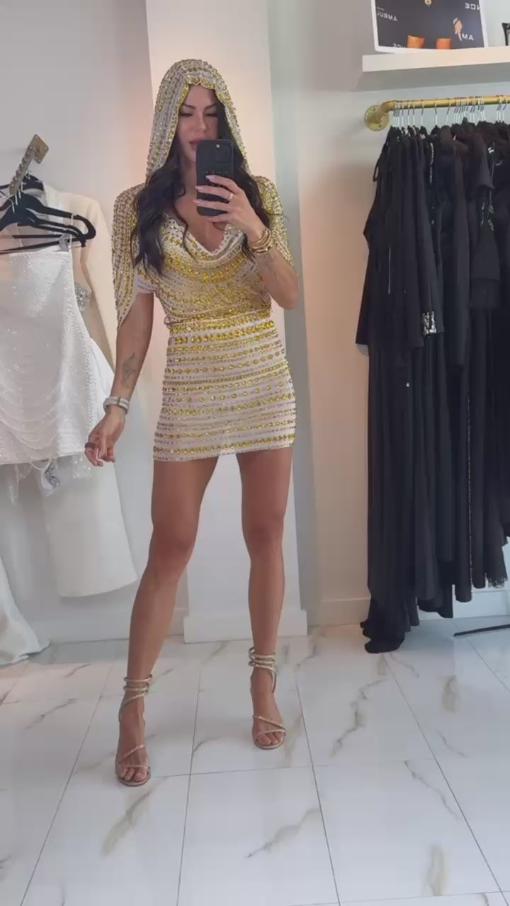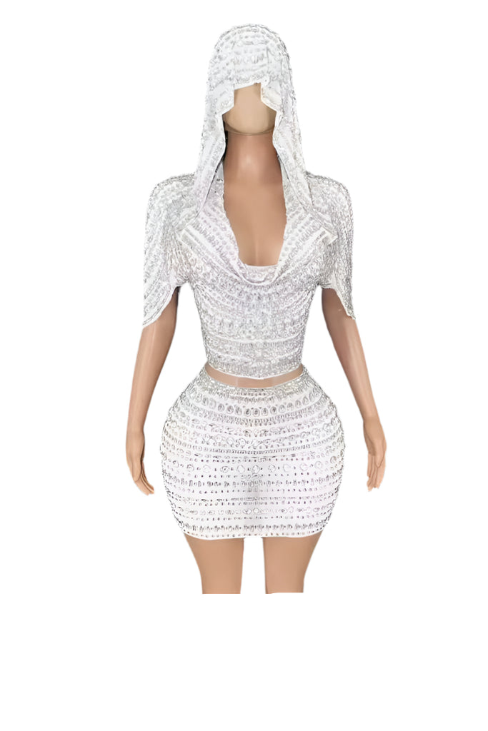 Jessica Bara Serafina Crystal Hooded Top and Mini Skirt Two Piece Set